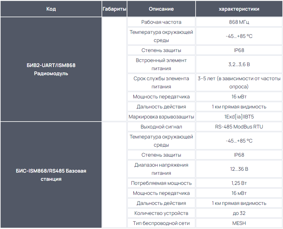 Беспроводные комплексы передачи/приёма данных на базе взрывозащищённых интерфейсных блоков БИВ2-UART/ISM868 И БИВ3-ISM868/RS485