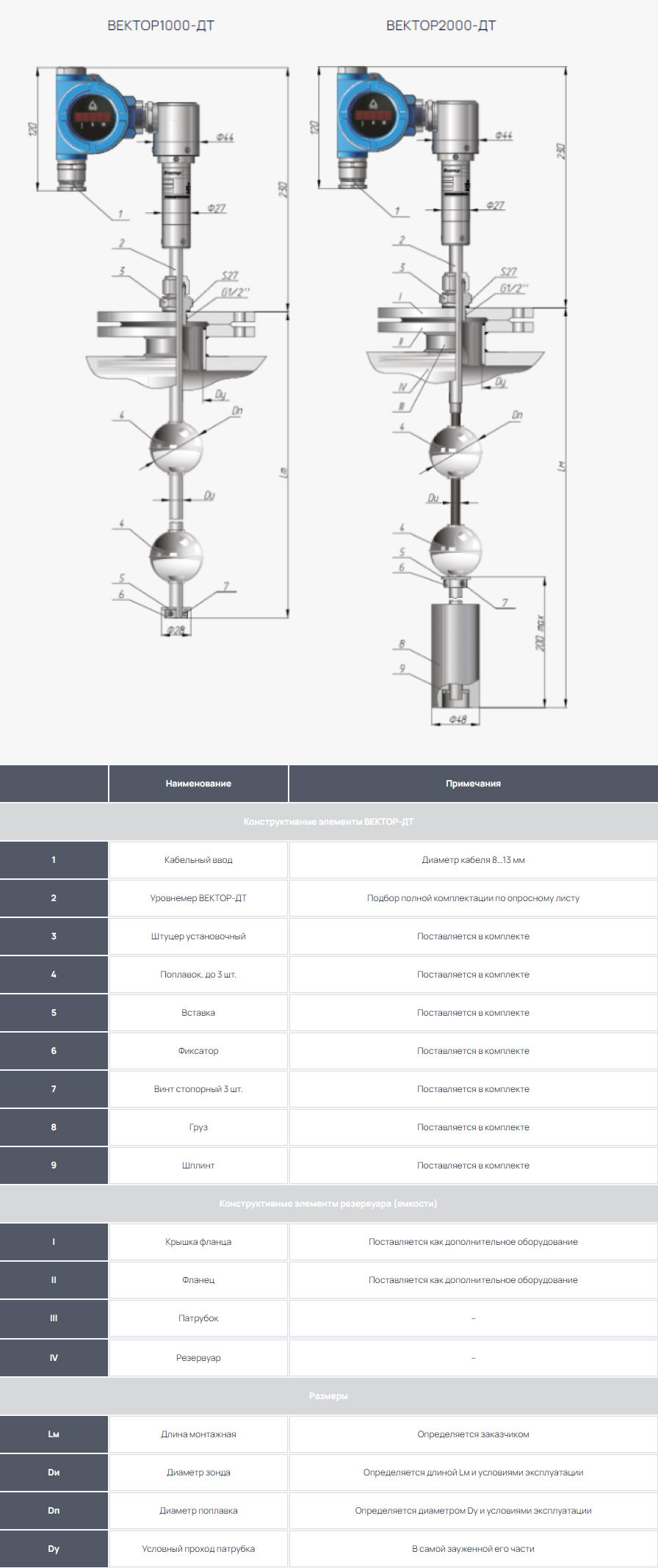 Выпуск по ТУ 4214-001038352196-2016 Принцип действия: магнитострикционный поплавковый Назначение: измерение уровня, уровня раздела сред, измерение температуры