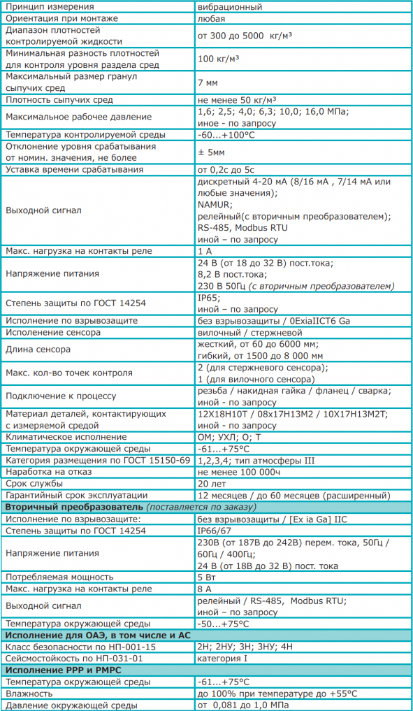 - контроль наличия/отсутствия жидких и сыпучих сред на заданном уровне - контроль уровня высоковязких и налипающих, а также сильно пенящихся жидких сред - контроль одним сенсором двух предельных/рабочих уровней жидких сред - контроль наличия твердого осадка - минимум импортных материалов и комплектующих изделий - моноблочное исполнение (может комплектоваться вторичным преобразователем) - наличие нескольких точек контроля на одном сенсоре (до 2х точек контроля) - широкий диапазон давлений контролируемой среды - возможность контроля уровня вязких и налипающих сред - нечувствительность к пене и отложениям - исполнение для применения на кораблях и судах - исполнение для применения на ОАЭ