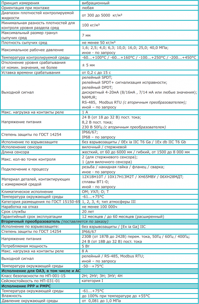 - минимум импортных материалов и комплектующих изделий - моноблочное исполнение (может комплектоваться вторичным преобразователем) - самодиагностика технического состояния с выдачей сигнала о неисправности - наличие нескольких точек контроля на одном сенсоре (до 2х точек контроля) - широкий диапазон рабочих температур контролируемой среды - широкий диапазон давлений контролируемой среды - изменение логики срабатывания - исполнение для применения на кораблях и судах - исполнение для применения на ОАЭ - Давление процесса до 25МПа - Температура рабочей среды до +450°С - Базовый корпус из нержавеющей стали - Компактность - Механическая прочность конструкции - Любые резьбовые и фланцевые соединения - Опциональный гибкий зонд с длиной до 8м - Возможность изменения режимов работы - Функция самодиагностики и контроля состояния сенсора - Версия с дополнительным релейным выходом по неисправности/налипанию
