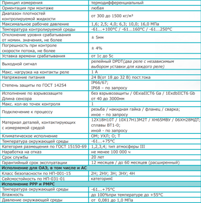 сигнализация наличия/отсутствия потока жидких и газовых сред